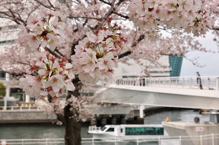 大岡川に咲き誇る桜を